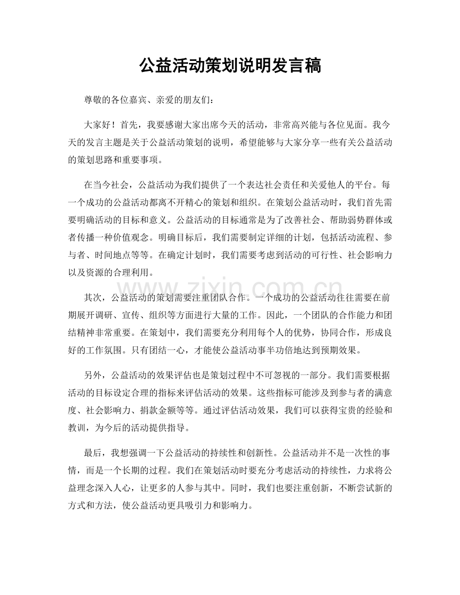 大家好!首先,我要感谢大家出席今天的活动,非常高兴能与各位见面。我今天的发言主题是关于公益活动策划的说明,希望能够与大家分享一些有关公益活动的策划思路和重要事项。
