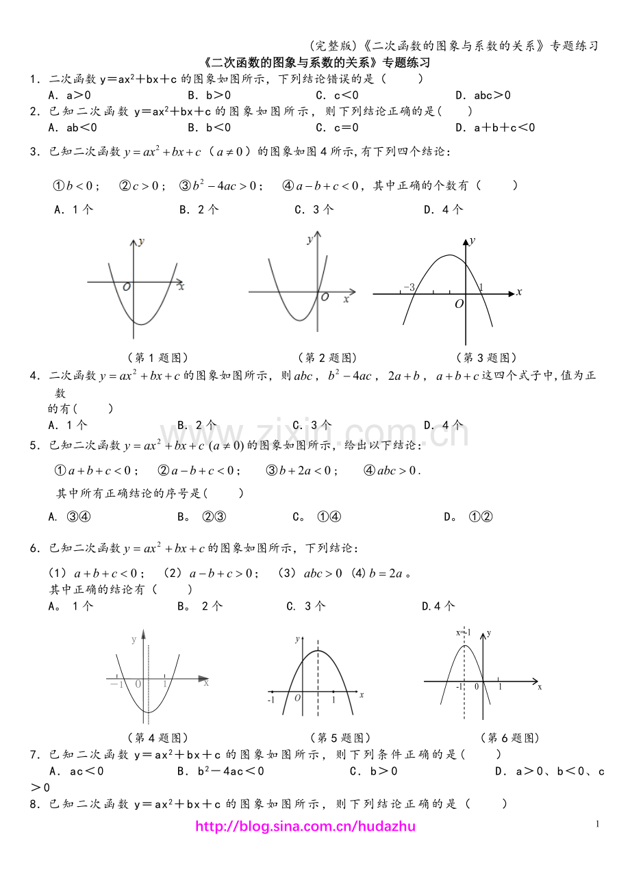 (完整版)《二次函数的图象与系数的关系》专题练习
