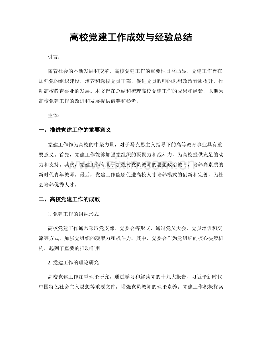 高校党建工作成效与经验总结