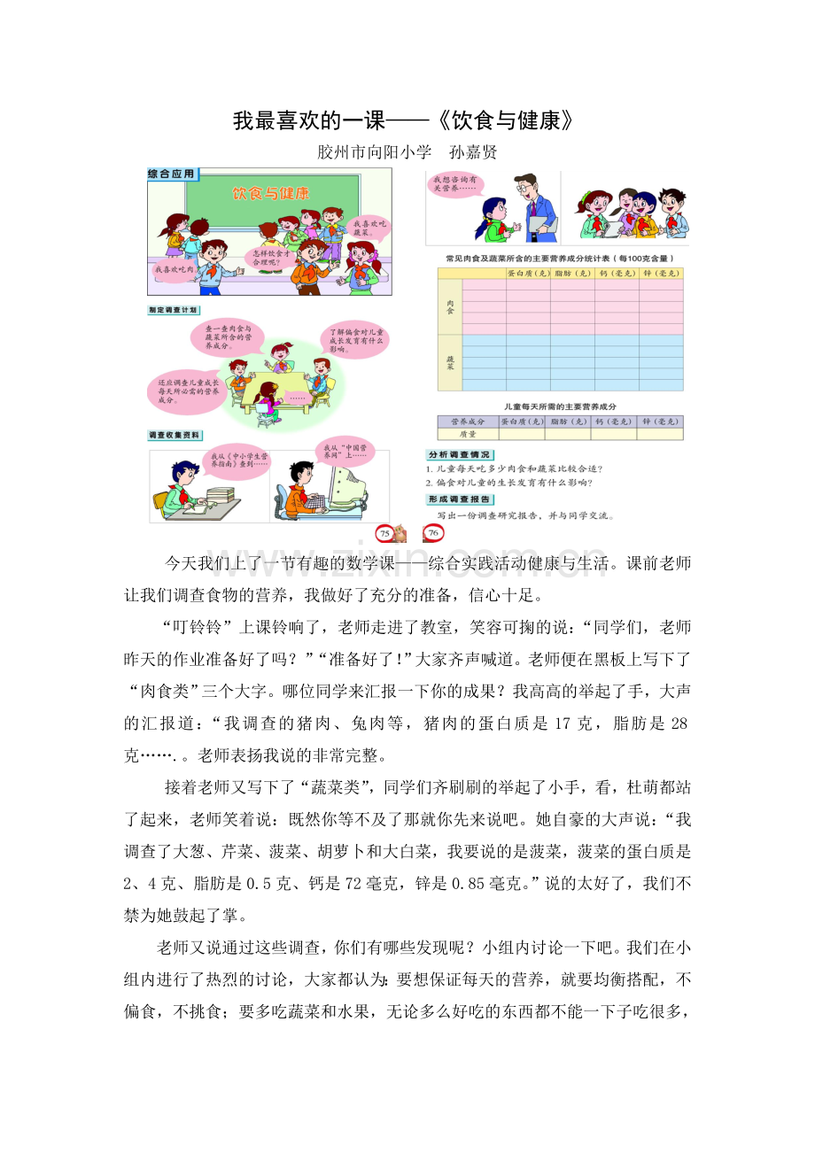 今天我们上了一节有趣的数学课——综合实践活动健康与生活。课前老师让我们调查食物的营养,我做好了充分的准备,信心十足。