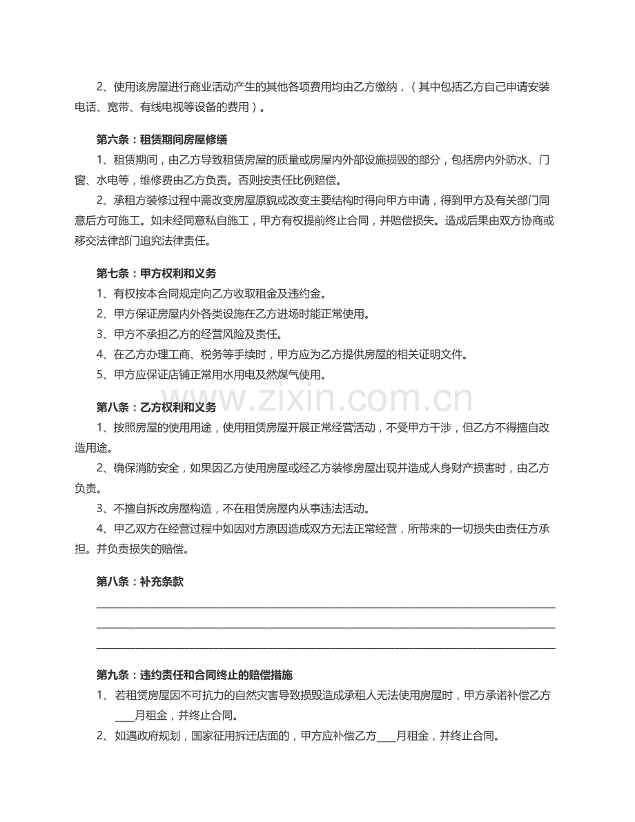4、在乙方办理工商、税务等手续时,甲方应为乙方提供房屋的相关证明文件。