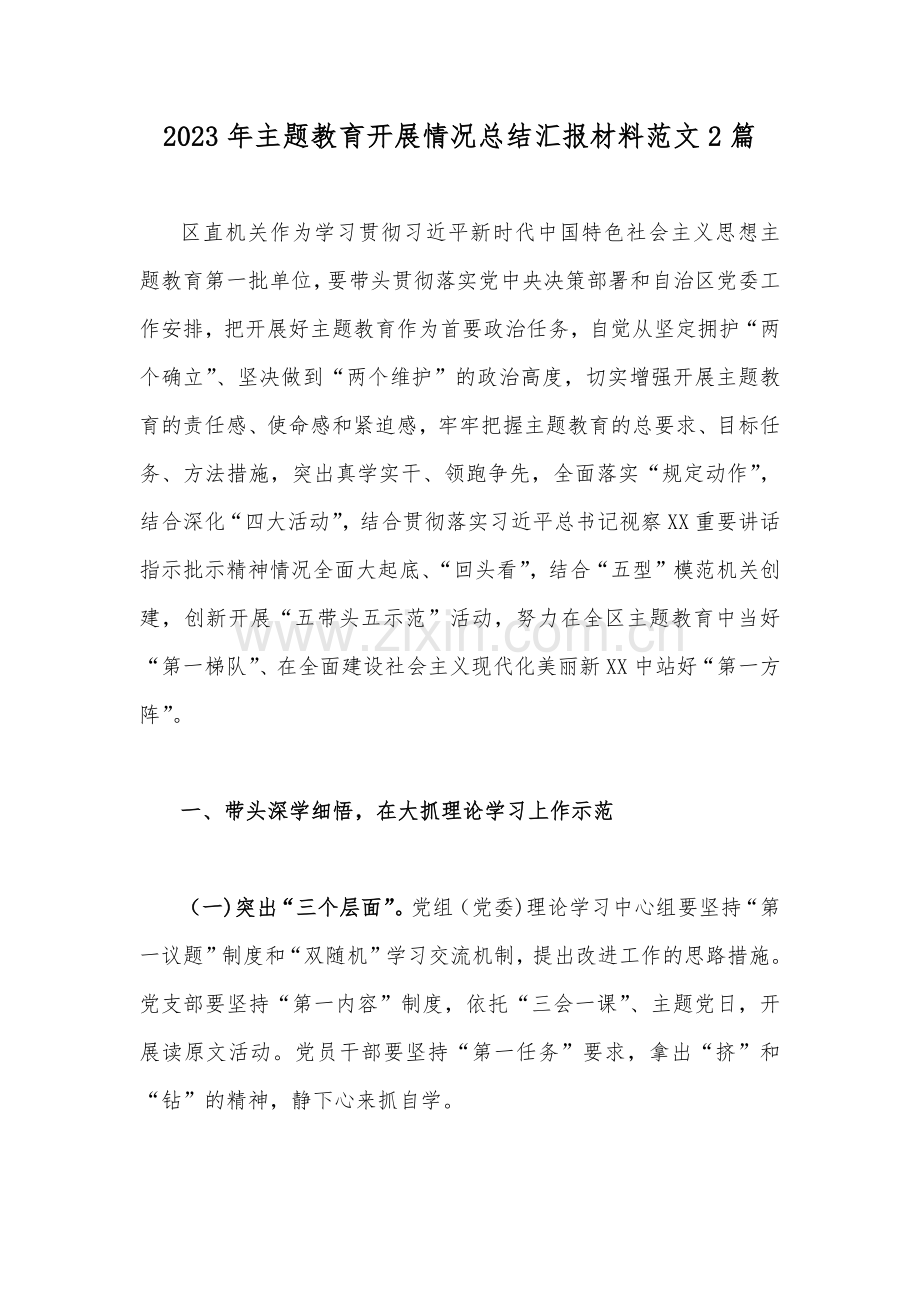2023年主题教育开展情况总结汇报材料780字范文简稿