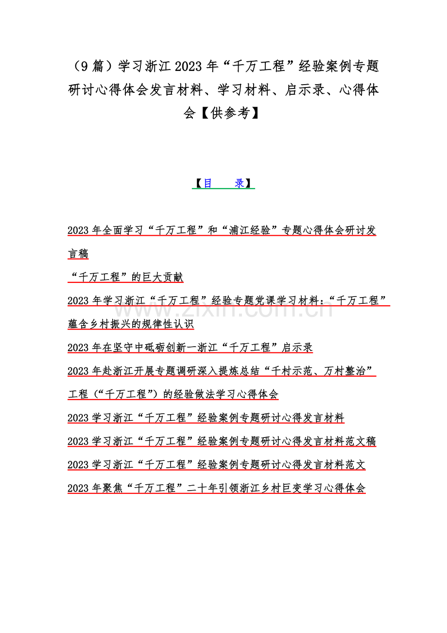 (9篇)学习浙江2023年“千万工程”经验案例专题研讨心得体会发言材料、学习材料、启示录、心得体会【供参考】