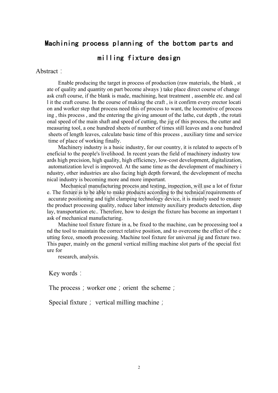 本课题主要是根据国内目前的机械制造行业的技术力量,结合现实工作中普通卧式铣床在加工多样化的批量产品中所遇到的困难与不足,进行研究、分析,设计零件加工工艺规程并寻找最优良的铣床专业夹具。