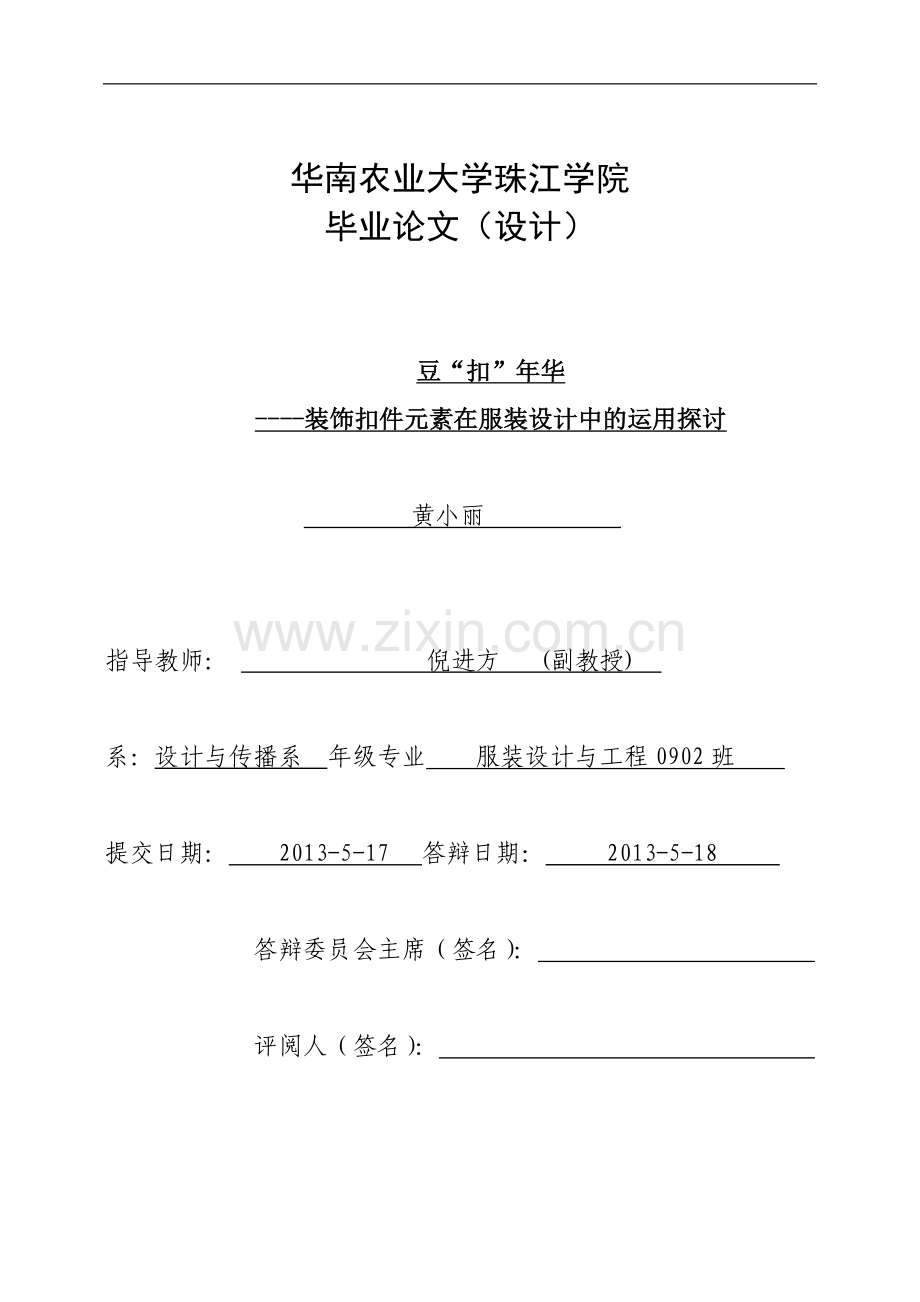 年级专业:服装设计与工程0902班 学生签名: 年 月 日