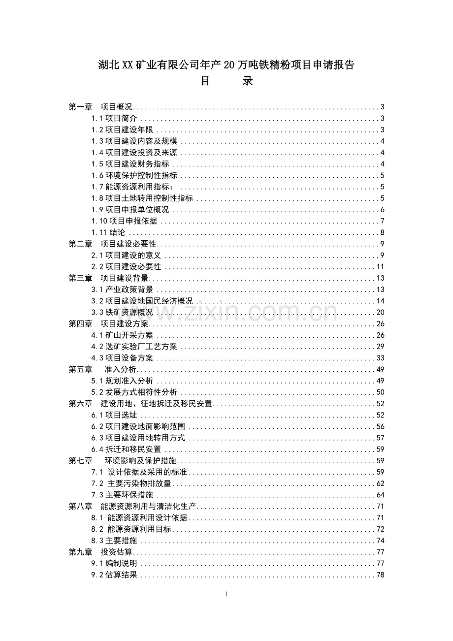 湖北XX矿业有限公司年产20万吨铁精粉项目申请报告