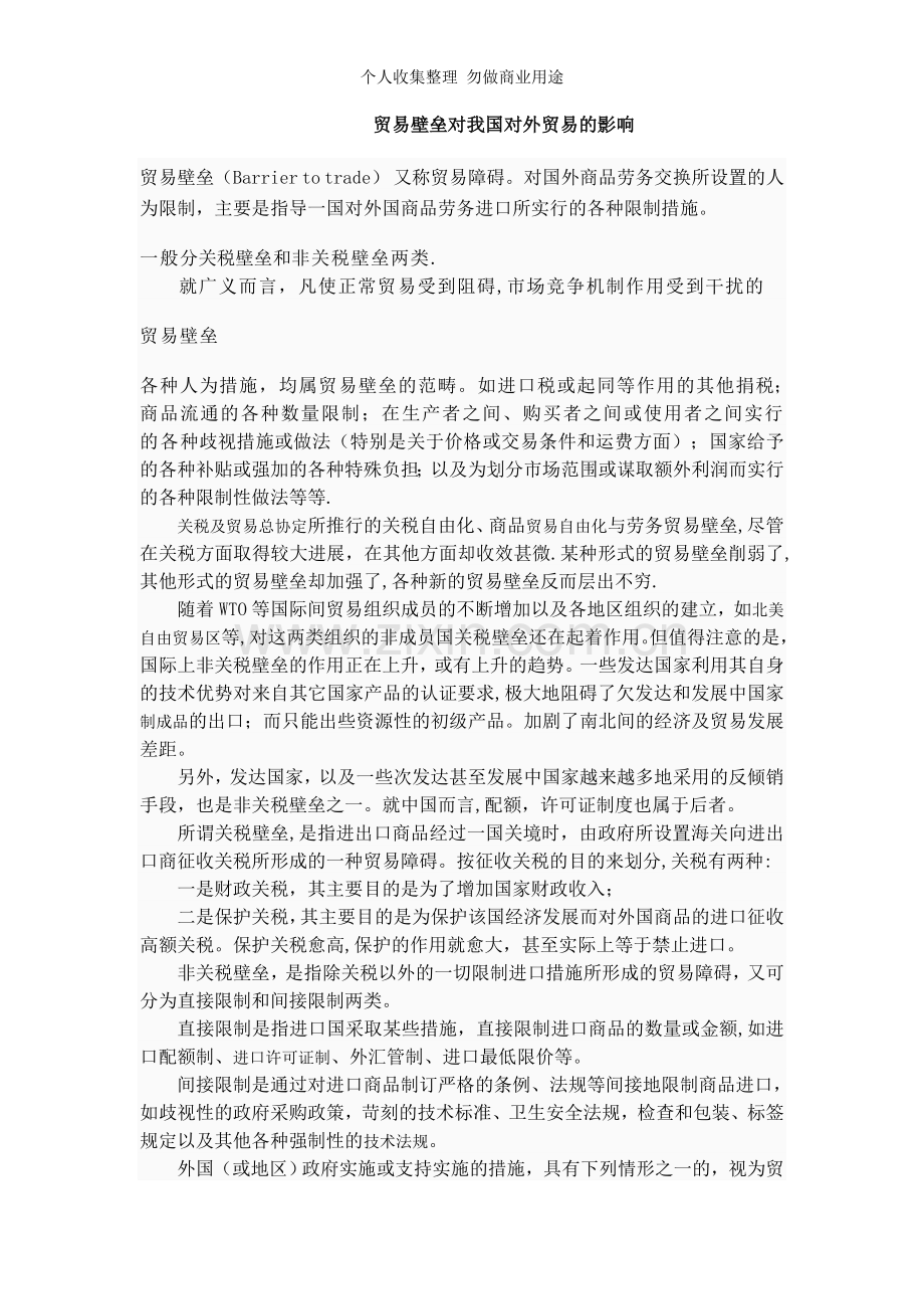 贸易壁垒对我国对外贸易的影响