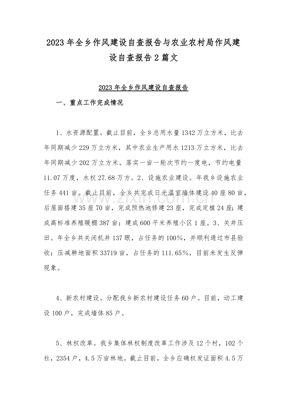 2023年全乡作风建设自查报告与农业农村局作风建设自查报告2篇文