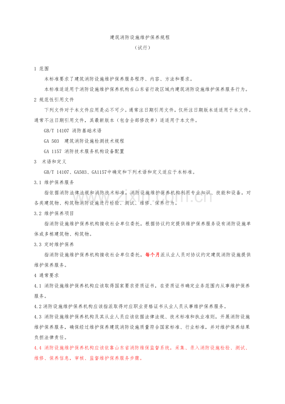 本标准适适用于消防设施维护保养机构在山东省行政区域内建筑消防设施维护保养服务行为。
