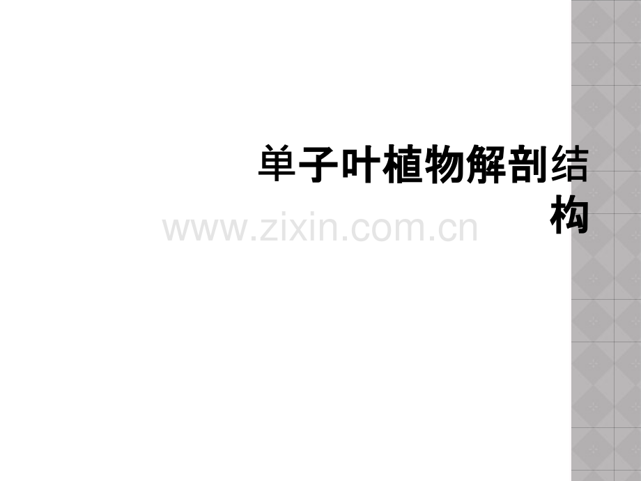 单子叶植物解剖子叶植物解剖结构构禾本科植物根的解剖结构特点禾本科植物属于单子叶植物,没有维管形成层和木栓形成层发生,不产生次生结构,其基本结构与双子叶植物根的初生结构相似,也分为表皮、皮层、中柱三部分。与双子叶植物比较有如下特点:(1)外皮层细胞层数较多,多层细胞组成。表皮脱落后,外皮层细胞壁栓化增厚,替代表皮起保护和支持作用(2)内皮层五面加厚:横向壁、径向壁、内切向壁加厚,只有外切向壁仍然保持薄壁,称马蹄形加厚。内切向壁具孔通道细胞:单子叶植物少数位于木质部束内皮层细胞不发生五面壁增厚,仍保持薄壁,称为通道细胞。(3)初生木质部常为多原型,中央常有髓。(4)在较老的根中,除初生韧皮部外,包括皮层和中柱在内的所有薄壁细胞都可能发生变化:或裂解形成气腔,或细胞壁木化增厚成为厚壁的类型。热带兰科和一些附生的天南星科植物的气生根中,表皮为多层,形成所谓的根被。禾本科植物茎的解剖结构特点禾本科植物茎的节与节间明显,节间有中空和实心两种类型。其节间解剖结构有两大特点:一是维管束星散分布,没有皮层和中柱的界限,整个结构由表皮、机械组织、基本组织和维管束组成。二是维管束为有限外韧维管束,无束中形成层,无次生生长和次生结构。茎表皮表皮由长细胞、短细胞构成长细胞:角质化充满硅质长方柱形短细胞:栓质细胞:壁栓质化,常含有机物硅质细胞:硅质体气孔由哑铃形的保卫细胞组成思考:小麦的叶为什么扎手?基本组织(玉米)1薄壁细胞组成,占茎的大部分体积的薄壁组织,愈向中央愈大,其中常有气腔或气道。2近表皮由厚壁细胞组成3具皮层和髓功能4少数植物具有髓或髓腔维管束分布:分散在基本组织中,在实心茎中星散分布,在中空茎中排成疏松的两环结构:有限外韧维管束维管束鞘由厚壁细胞组成。初生木质部内始式;初生韧皮部由筛管和伴胞组成;无束中形成层注意:木质部导管呈“v”形玉米茎的立体结构和平面结构禾本科植物叶片的结构特点(表皮)表皮由长细胞、短细胞构成长细胞:角质化充满硅质长方柱形短细胞:栓质细胞:壁栓质化,常含有机物硅质细胞:硅质体气孔由哑铃形的保卫细胞组成泡状细胞是一些大型含水的薄壁细胞,分布于两条叶脉之间的上表皮,其功能与叶片的内卷和展开有关。注意:运动细胞的结构(含水、较大液泡、无叶绿素、外壁较厚)、分布、功能下表皮没有泡状细胞泡状细胞(运动细胞)位于相邻两叶脉之间的上表皮,为几个大型的薄壁细胞,其长轴与叶脉平行。在叶片过多失水时,泡状细胞发生萎蔫,叶片内卷成筒状以减少蒸腾。天气湿润,水分充足时,它们吸水膨胀,叶片平展,故泡状细胞又称运动细胞。叶肉*没有栅栏组织和海绵组织之分化,由同形的细胞组成,属于等面叶。叶肉细胞形状不规则,细胞壁向内皱褶,形成“峰、谷、腰、环”的多环结构。*叶肉胞间隙较小。*孔下室:气孔内方具有较大的胞间隙*花环式结构:c4植物维管束鞘外侧密接一层环状叶肉细胞思考:等面叶与异面叶进化?禾本科植物的叶脉叶脉具平行脉。结构:为有限外韧维管束韧皮部、木质部和维管束鞘组成。较大的叶脉,其维管束上、下方常有厚壁组织与表皮相连。注意:C4植物:维管束鞘由一层薄壁细胞C3植物:两层细胞,外层为薄壁细胞,内层为厚壁细胞组成。(五)竹茎的结构1机械组织发达(1)下表皮:紧靠表皮下厚壁组织层(2)髓腔多层石细胞细胞层(3)纤维构成维管束鞘(4)纤维构成维管束2原生木质部腔隙被填充3基本组织是厚壁组织且木质化思考:单子叶植物如何增强支持力。医学资料仅供参考,用药方面谨遵医嘱