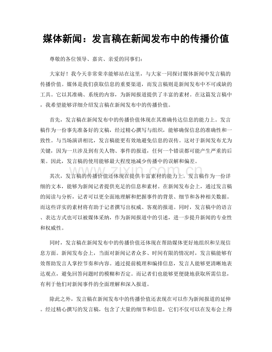 媒体新闻:发言稿在新闻发布中的传播价值