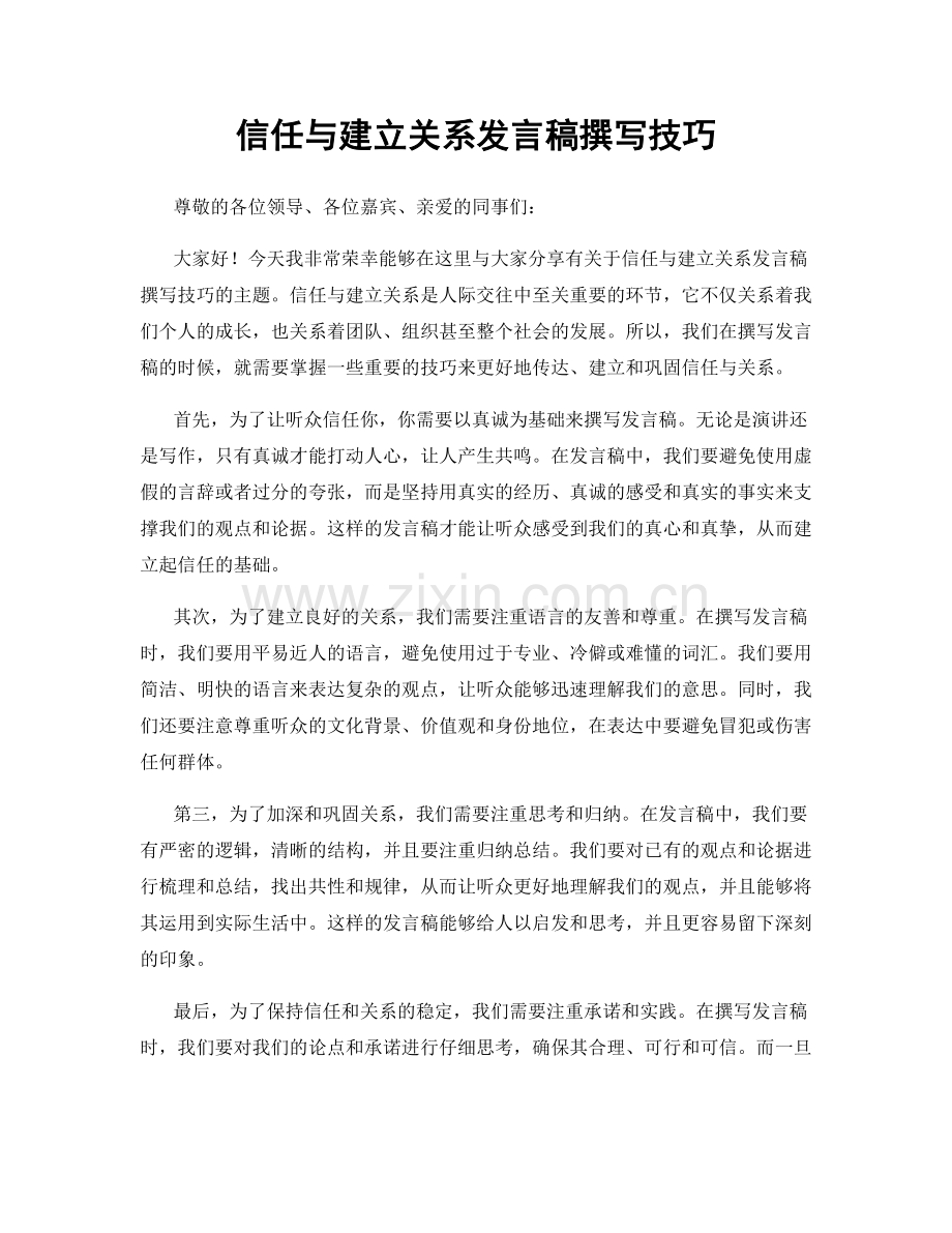 大家好!今天我非常荣幸能够在这里与大家分享有关于信任与建立关系发言稿撰写技巧的主题。信任与建立关系是人际交往中至关重要的环节,它不仅关系着我们个人的成长,也关系着团队、组织甚至整个社会的发展。所以,我们在撰写发言稿的时候,就需要掌握一些重要的技巧来更好地传达、建立和巩固信任与关系。