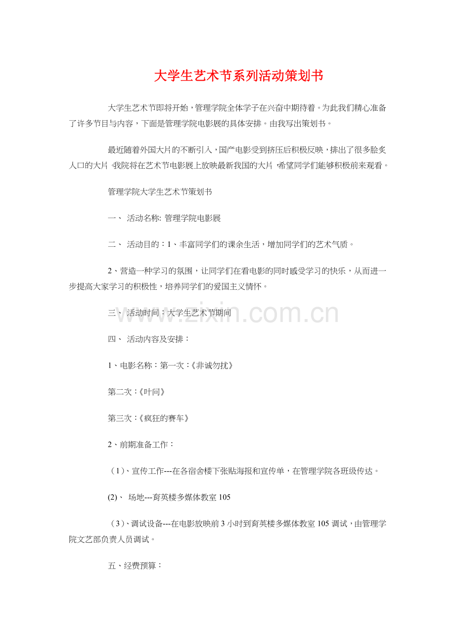 大学生艺术节即将开始,管理学院全体学子在兴奋中期待着。为此我们精心准备了许多节目与内容,下面是管理学院电影展的具体安排。由我写出策划书。