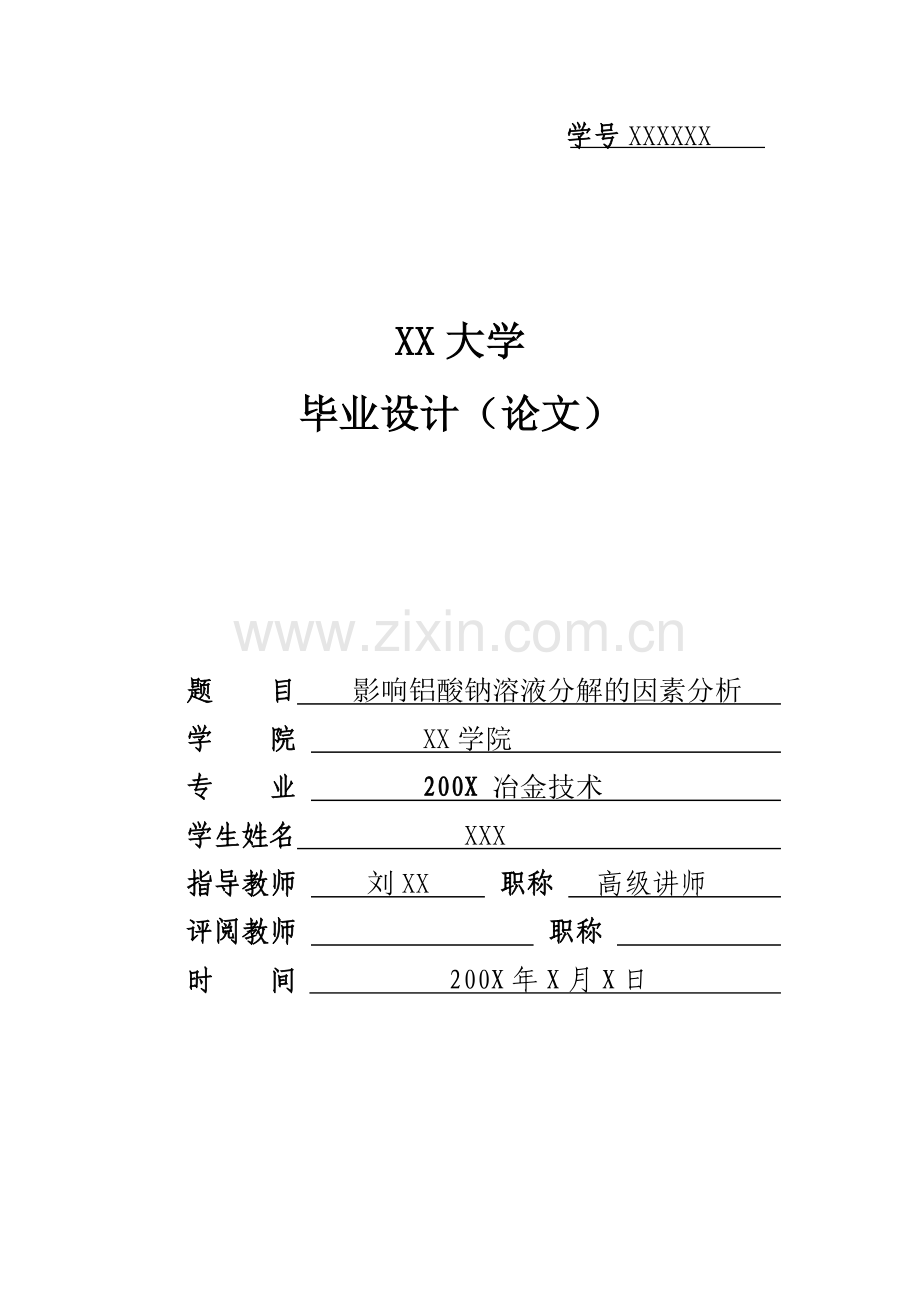指导教师: 刘XX 学生姓名: XX 学号:XXXXX 专业:冶金技术