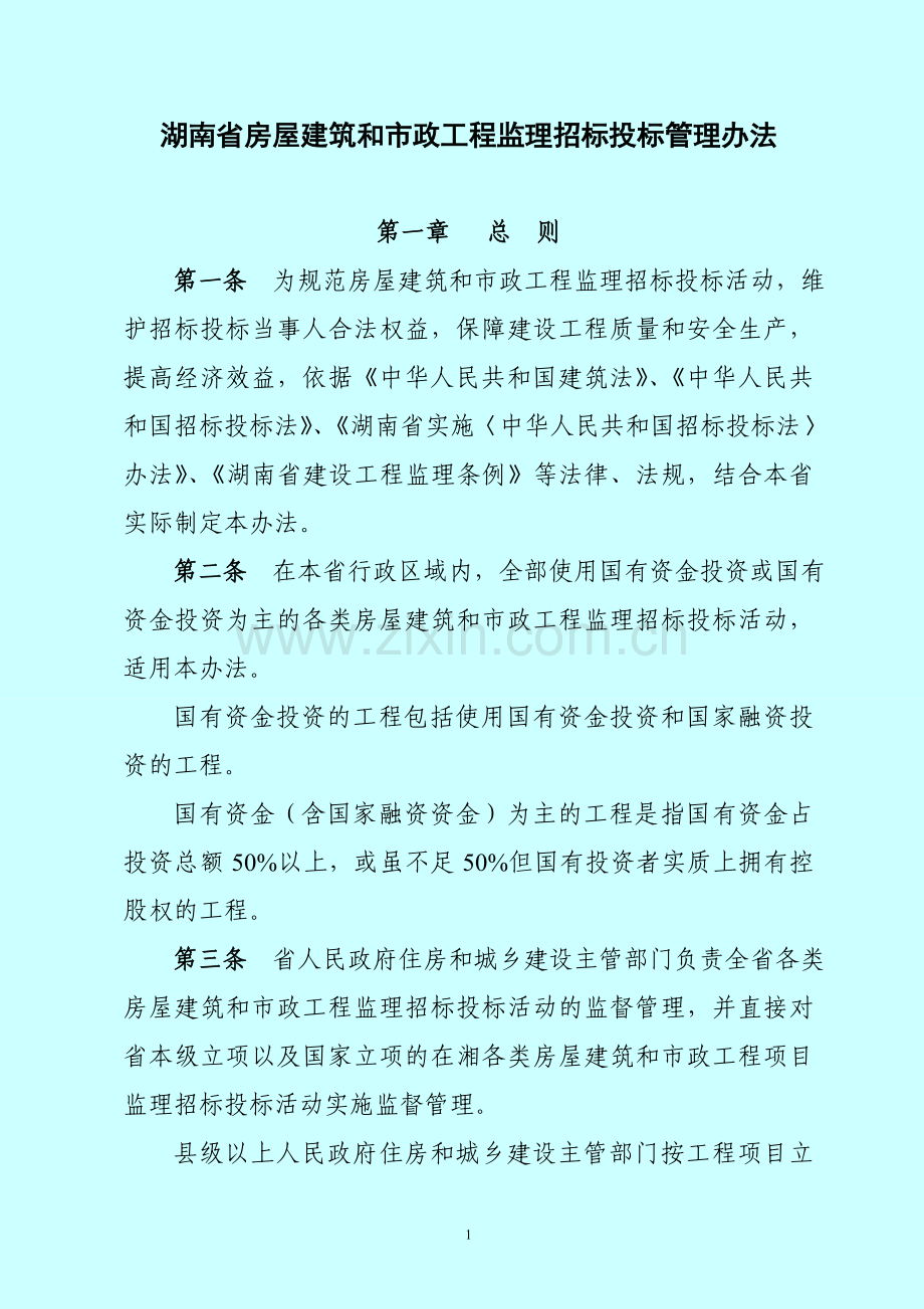 湖南省房屋建筑和市政工程监理招标投标管理办法