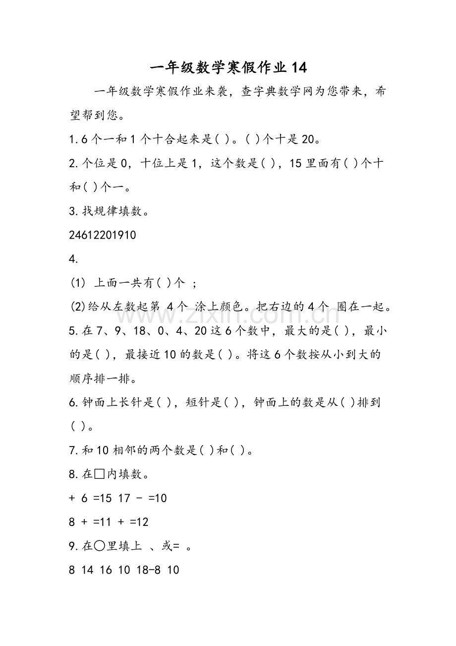 一年级数学寒假作业来袭,查字典数学网为您带来,希望帮到您。