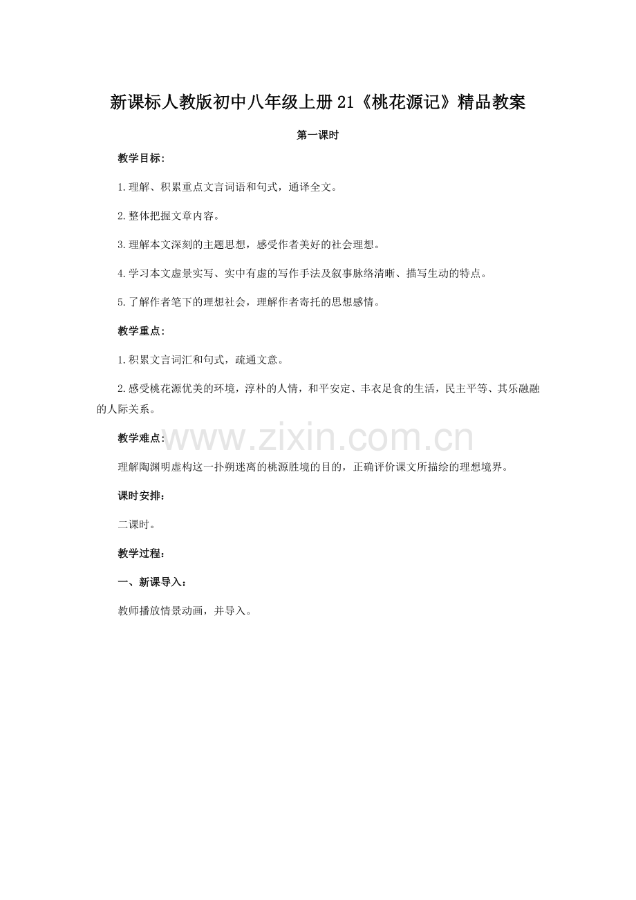 新课标人教版初中八年级上册21《桃花源记》精品教案