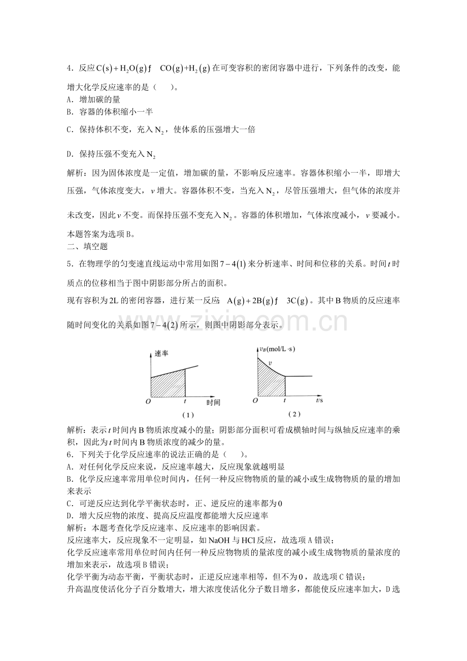 解析:表示时间内物质浓度减小的量;阴影部分面积可看成横轴时间与纵轴反应速率的乘积,因此为时间内物质浓度的减少的量。