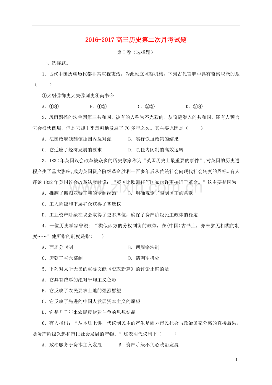 1.古代中国历朝历代都非常重视吏治,为此设立监察机构,下列古代官职中具有监察职能的是( )