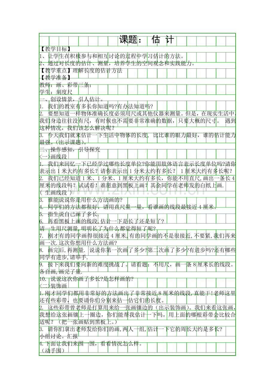 1、让学生在积极参与和相互讨论的过程中学习估计的方法。