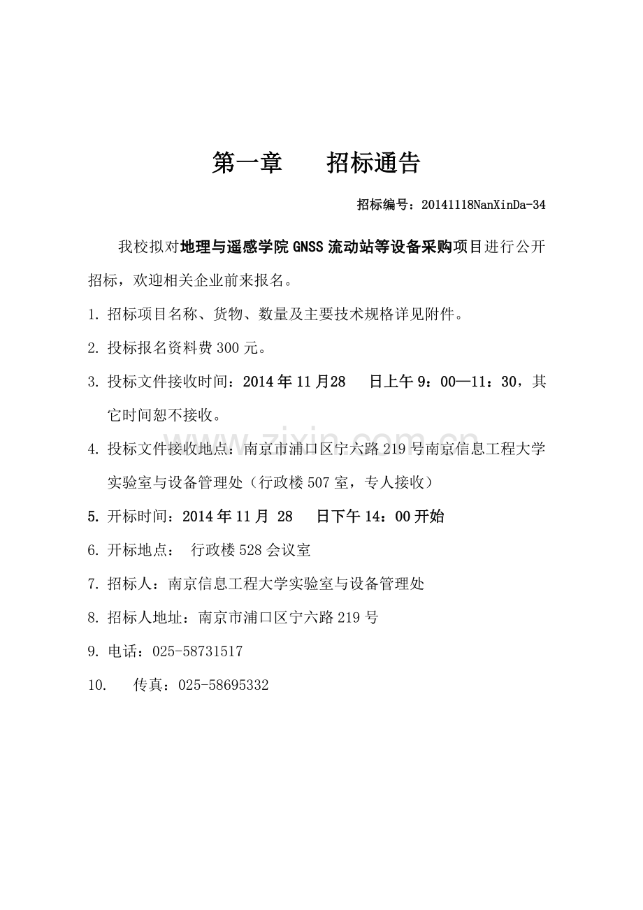 南京信息工程大学实验室与设备管理处招标文件