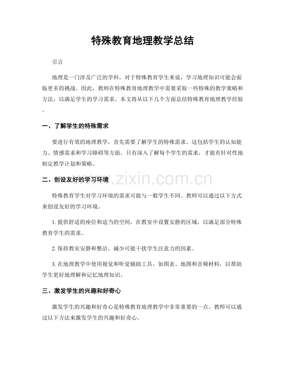 特殊教育地理教学总结
