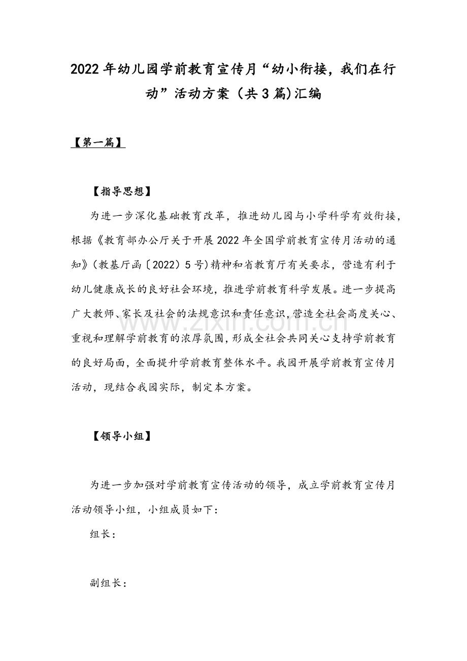2022年幼儿园学前教育宣传月“幼小衔接,我们在行动”活动方案(共3篇)汇编