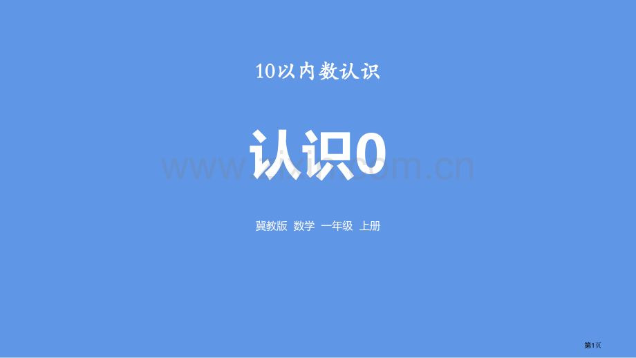 1010以内数认识以内数认识认识0冀教版 数学 一年级 上册第1页1.1.使学生会认、读、写使学生会认、读、写0 0,知道,知道0 0表示表示含义,了解含义,了解0 0在实际生活中简单在实际生活中简单应用。应用。2.2.经过经过观察、观察、比较等比较等活动让学生体验、经历活动让学生体验、经历0 0抽象过程,培养学生观抽象过程,培养学生观察能力察能力和语言和语言表示能力。表示能力。3.3.在在详细情境中,感受数意义,体会数用来表示作用,初步详细情境中,感受数意义,体会数用来表示作用,初步建立建立数感,数感,使学生体会数学就在身边,培养学生参加学习数学兴趣和主动性,使学生体会数学就在身边,培养学生参加学习数学兴趣和主动性,体体验验与同学交流学习乐趣与同学交流学习乐趣。第2页儿童们,你们知道哪个数比1小吗?第3页鸟窝里有几只小鸟?4只。第4页飞走了1只,还剩几只?3只。第5页又飞走了1只,还剩几只?2只。第6页2只全飞走了,现在呢?鸟窝里一只小鸟也没有了。一只小鸟也没有,用0表示。第7页生活中有哪些地方用到0?第8页电视机有0频道。0第9页温度计有0摄氏度。第10页汽车上有0。110第11页门牌号上有0。302第12页这些0意思相同吗?0110302第13页想一想,下面0表示什么?尺子上0表示尺子是从0开始。厘米第14页想一想,下面0表示什么?记分牌上0表示没有进球。第15页1看图说话。池塘里有5只小鸭子在游泳。第16页有2只小鸭子上岸了,河里还有3只小鸭子。1看图说话。第17页小鸭子全上岸了,河里一只也没有了,也就是0只鸭子。1看图说话。第18页0认识和读、写一个也没有可以用0表示。0还可以表示开始或占位。第19页1看图写数。()()()()1302第20页2你能按点子卡次序写出下面电话号码吗?3105240第21页3在 里填上、或=。7034003025089622第22页4照样子写房号。我家住在8层1号,房号是801。我家住在5层4号,房号是()。我家住在6层8号,房号是()。504608第23页