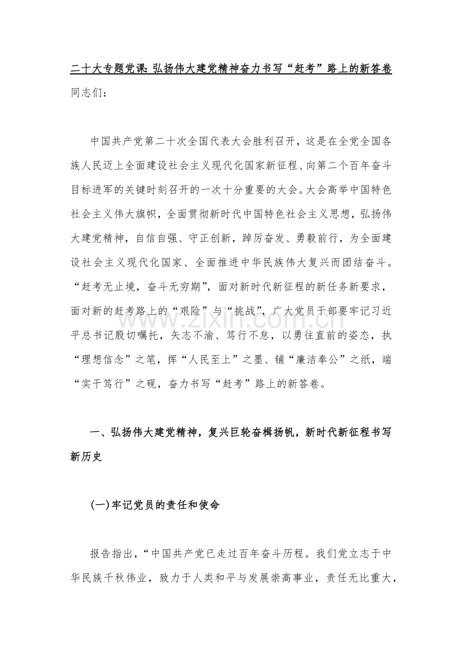 二十大专题党课:弘扬伟大建党精神奋力书写“赶考”路上的新答卷