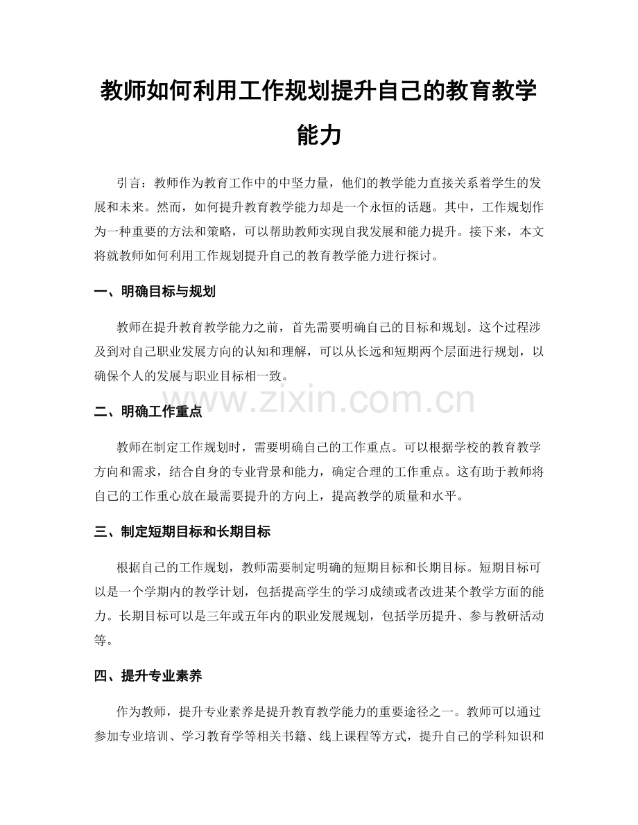 引言:教师作为教育工作中的中坚力量,他们的教学能力直接关系着学生的发展和未来。然而,如何提升教育教学能力却是一个永恒的话题。其中,工作规划作为一种重要的方法和策略,可以帮助教师实现自我发展和能力提升。接下来,本文将就教师如何利用工作规划提升自己的教育教学能力进行探讨。