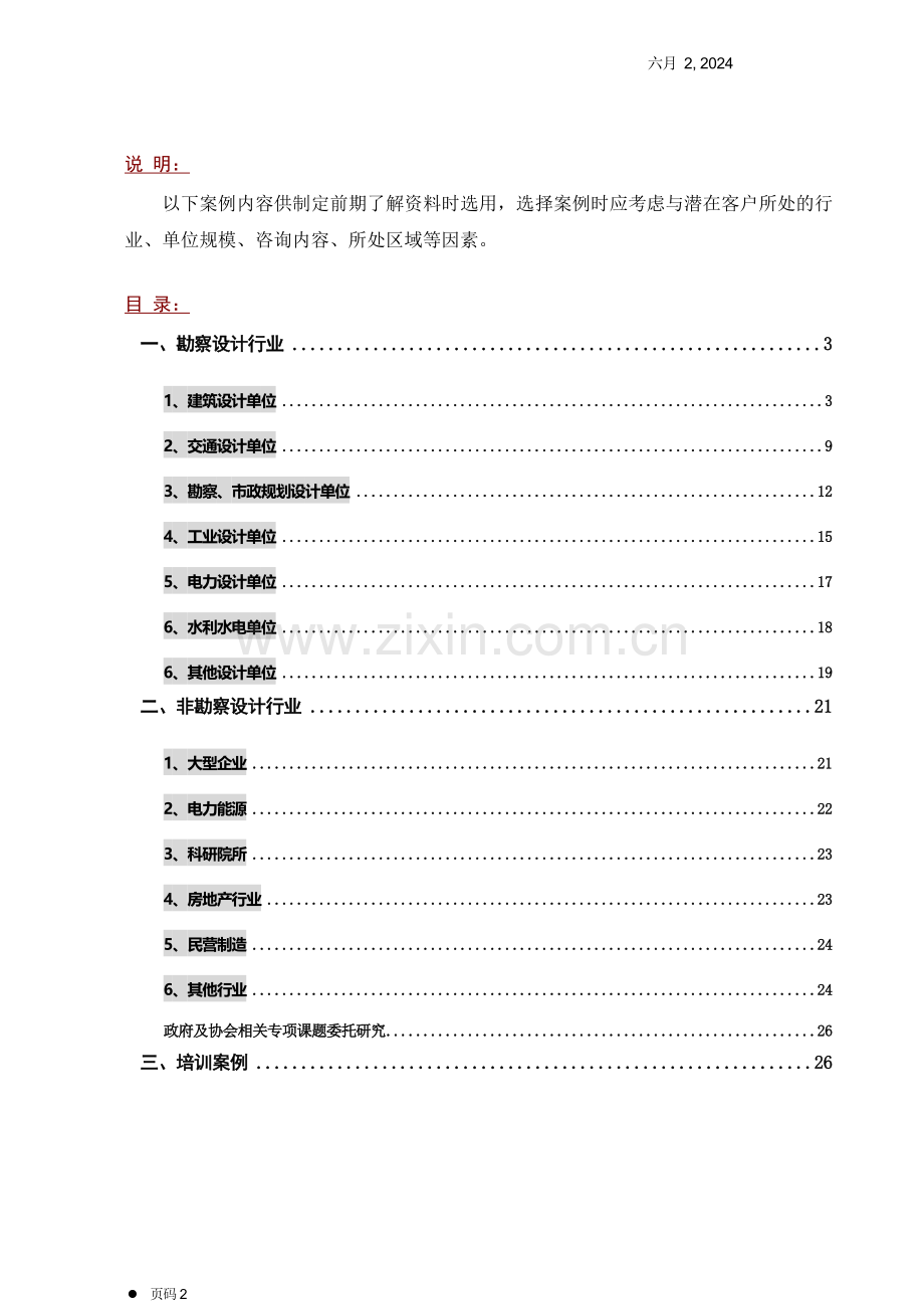 以下案例内容供制定前期了解资料时选用,选择案例时应考虑与潜在客户所处的行业、单位规模、咨询内容、所处区域等因素。