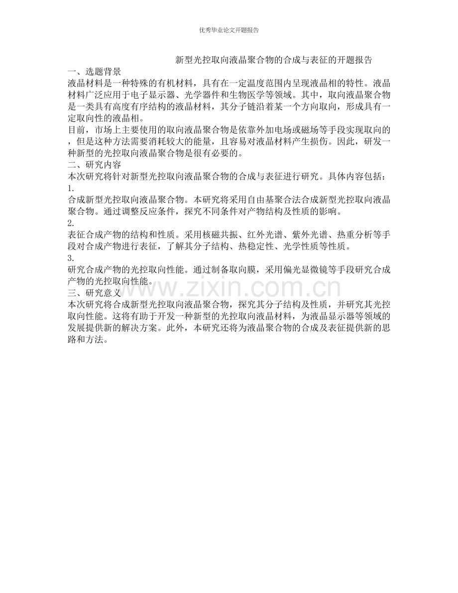 新型光控取向液晶聚合物的合成与表征的开题报告