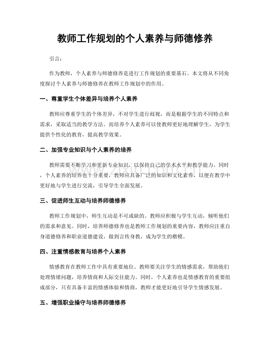 作为教师,个人素养与师德修养是进行工作规划的重要基石。本文将从不同角度探讨个人素养与师德修养在教师工作规划中的作用。
