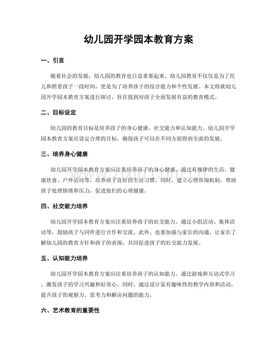 随着社会的发展,幼儿园的教育也日益重要起来。幼儿园教育不仅仅是为了托儿和照看孩子一段时间,更是为了培养孩子的综合能力和个性发展。本文将就幼儿园开学园本教育方案进行探讨,旨在找到对孩子全面发展有益的教育模式。