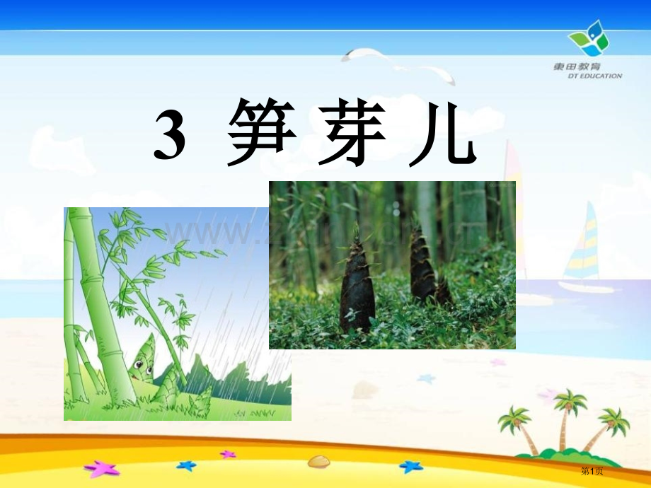 3 笋笋 芽芽 儿儿第1页第2页笋笋 唤唤 揉揉 漆漆 轰轰 扭扭 钻钻唠唠 辫辫 抚抚 滋滋 润润 冈冈 豪豪 第3页第4页呼唤呼唤 漆黑漆黑 钻出钻出 唠叨唠叨 爱抚爱抚 滋润滋润 山冈山冈 笋芽儿笋芽儿 揉眼睛揉眼睛 轰隆隆轰隆隆 长辫子长辫子第5页()()低声呼唤笋芽儿低声呼唤笋芽儿()()用粗重嗓音呼唤笋芽儿用粗重嗓音呼唤笋芽儿()()不停地唠叨笋芽儿不停地唠叨笋芽儿第6页 沙沙沙,沙沙沙。春雨姑娘在绿色叶丛中弹奏着沙沙沙,沙沙沙。春雨姑娘在绿色叶丛中弹奏着乐曲,低声呼唤着沉睡笋芽儿乐曲,低声呼唤着沉睡笋芽儿:“笋芽儿,醒醒啊,笋芽儿,醒醒啊,春天来啦春天来啦!”第7页 轰隆隆轰隆隆!轰隆隆轰隆隆!雷公公把藏了很久大鼓重雷公公把藏了很久大鼓重重地敲了起来。他用粗重嗓音呼唤着笋芽儿。重地敲了起来。他用粗重嗓音呼唤着笋芽儿。第8页 妈妈见了,忙给笋芽儿穿上妈妈见了,忙给笋芽儿穿上一件又一件衣服,还不停地唠叨一件又一件衣服,还不停地唠叨:“千万别着凉。千万别着凉。”第9页 啊,多么明亮、多么漂亮世界呀啊,多么明亮、多么漂亮世界呀!她看到了她看到了_。第10页 她看到了她看到了_。第11页 她看到了她看到了_,听到了听到了_。第12页多美好春光啊多美好春光啊!我要快快长大我要快快长大!第13页笋芽儿真幸福呀笋芽儿真幸福呀!春雨姑娘春雨姑娘()()她,她,()()她。她。太阳公公太阳公公()()她,她,()()她。她。笋芽妈妈笋芽妈妈()()她,她,()()她。她。春风姑娘春风姑娘()()她,她,()()她。她。第14页在笋芽儿成长过程中,除了他自己奋发努力,在笋芽儿成长过程中,除了他自己奋发努力,主动向上,还得到了春雨、雷公公、妈妈关心、主动向上,还得到了春雨、雷公公、妈妈关心、爱护。想象一下,假如你是笋芽儿,会对他们说爱护。想象一下,假如你是笋芽儿,会对他们说些什么呢些什么呢?第15页你还知道哪些植物或动物生长过程?和同学你还知道哪些植物或动物生长过程?和同学们说一说。们说一说。第16页你在成长过程中得到了哪些人关心和爱护你在成长过程中得到了哪些人关心和爱护?第17页
