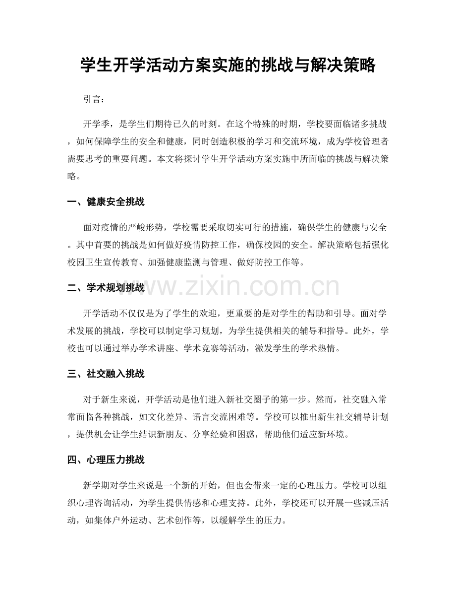 开学季,是学生们期待已久的时刻。在这个特殊的时期,学校要面临诸多挑战,如何保障学生的安全和健康,同时创造积极的学习和交流环境,成为学校管理者需要思考的重要问题。本文将探讨学生开学活动方案实施中所面临的挑战与解决策略。
