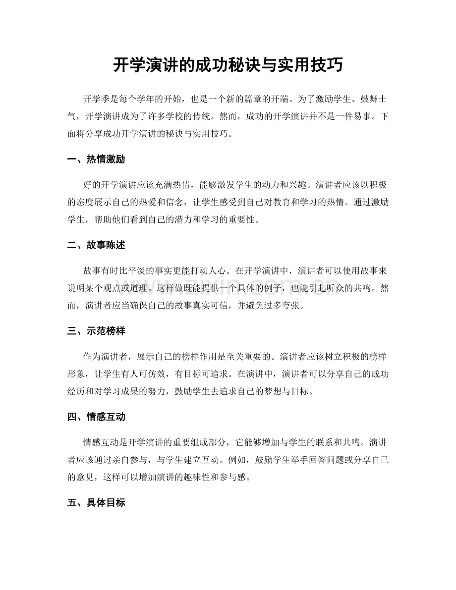 成功的开学演讲需要积极激励、真实可信的故事、榜样示范、情感互动、具体目标、以学生为中心、呼吁行动、尊重多样性、利用幽默和表达感激。以上的技巧和秘诀可以帮助演讲者在开学季打动学生,激发他们的学习热情和动力,推动他们在新学年中取得成功。最重要的是,演讲者要真诚地与学生连接,传递正能量,从而成为他们成长的引导者。