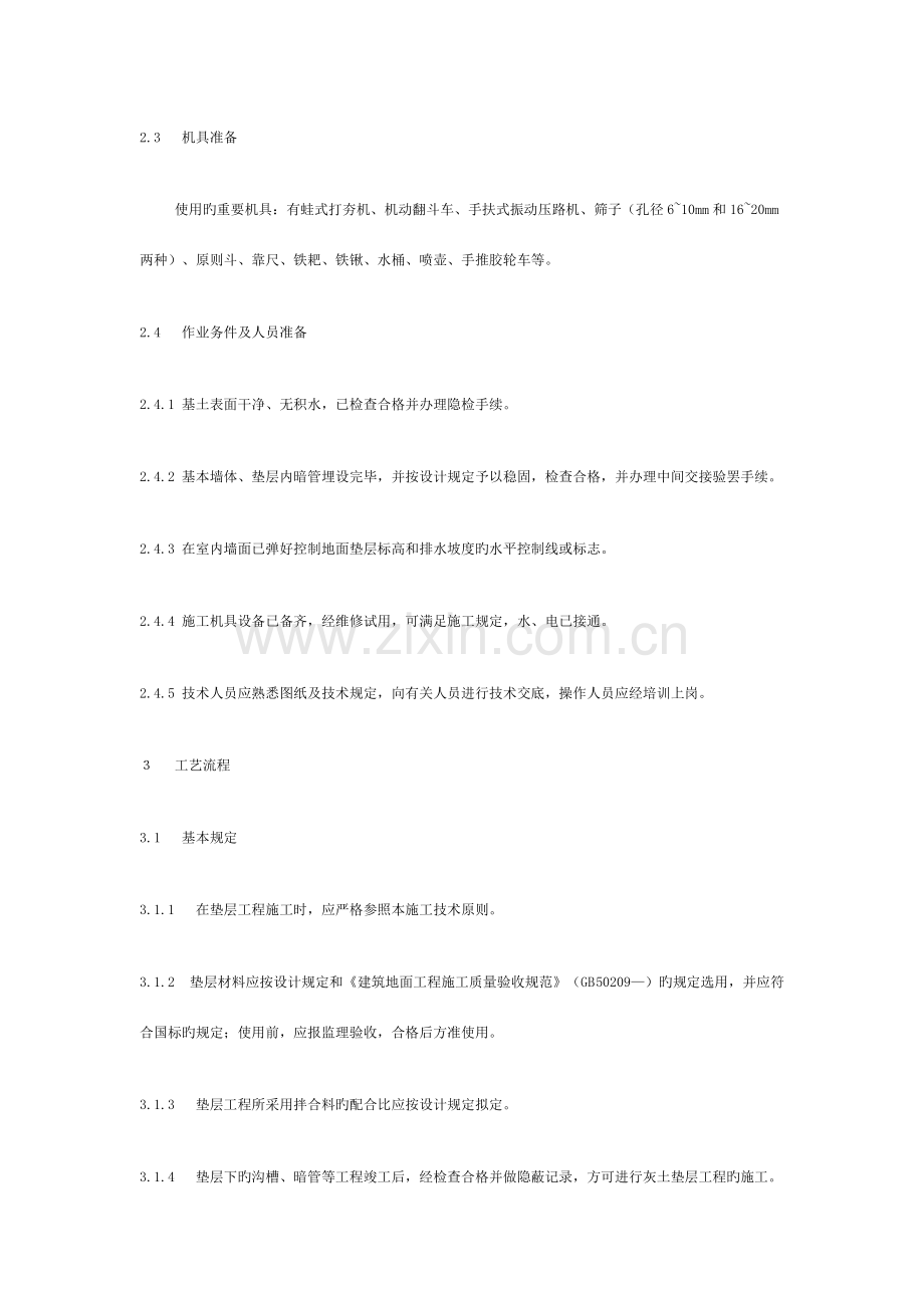 3.1.1 在垫层工程施工时,应严格参照本施工技术原则。