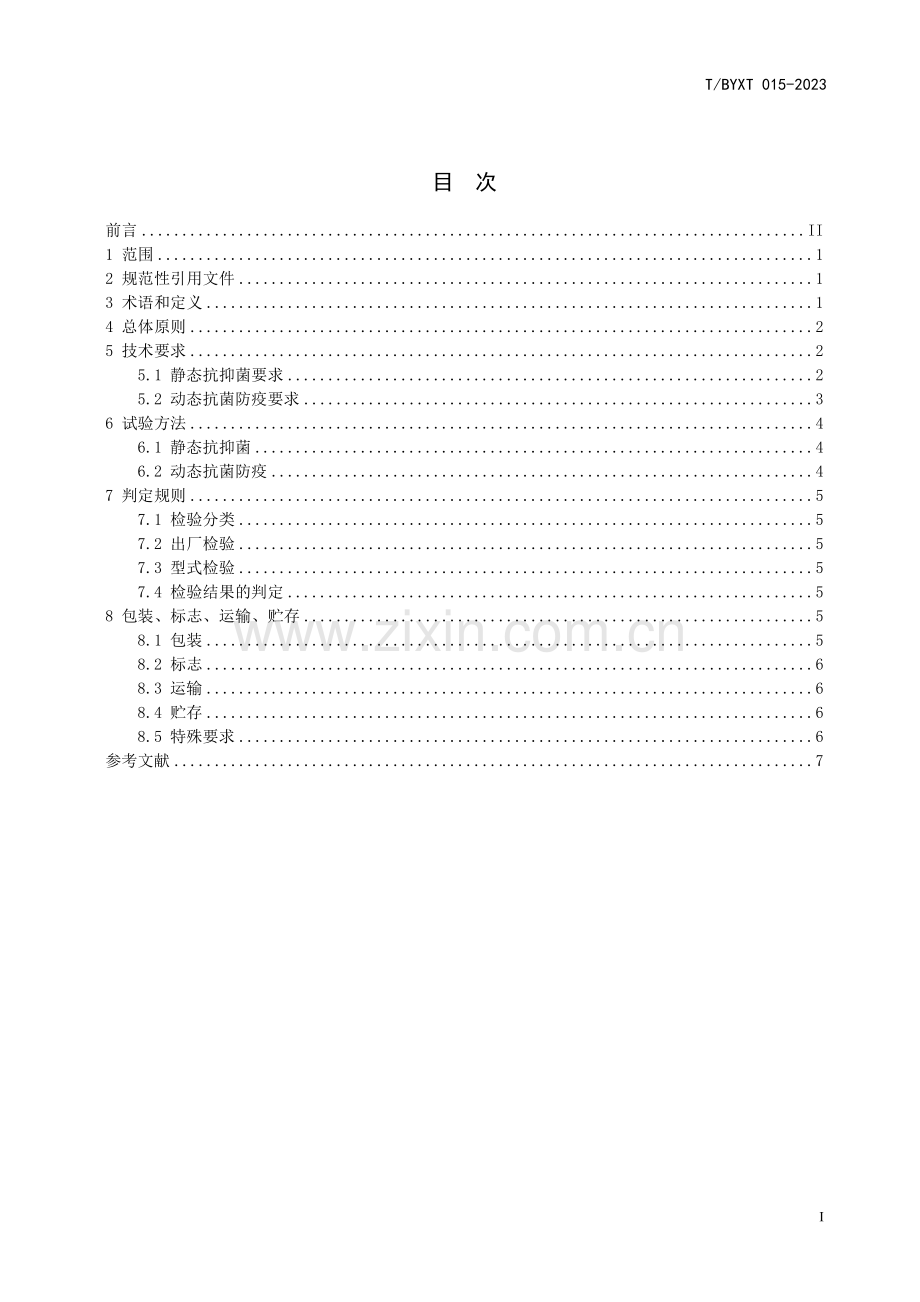稀土抗菌防疫离子消毒净化器Rare earth antibacterial and epidemic prevention ion disinfection purifier2023-03-20 发布2023-04-01 实施ICS 97.030CCS Y62团体标准团体标准T/BYXT 015-2023包头市白云鄂博矿区市场监督管理局包头市白云鄂博矿区稀土产业标准化协会发布T/BYXT 015-2023I目次前言.II1 范围.12 规范性引用文件.13 术语和定义.14 总体原则.25 技术要求.25.1 静态抗抑菌要求.25.2 动态抗菌防疫要求.36 试验方法.46.1 静态抗抑菌.46.2 动态抗菌防疫.47 判定规则.57.1 检验分类.57.2 出厂检验.57.3 型式检验.57.4 检验结果的判定.58 包装、标志、运输、贮存.58.1 包装.58.2 标志.68.3 运输.68.4 贮存.68.5 特殊要求.6参考文献.7T/BYXT 015-2023II前前言言本文件按照 GB/T 1.12020 标准化工作导则 第 1 部分:标准化文件的结构和起草规则的规定起草。请注意本文件的某些内容可能涉及专利。本文件的发布机构不承担识别专利的责任。本文件由包头市白云鄂博矿区市场监督管理局、包头市稀谷科技有限公司提出。本文件由包头市白云鄂博矿区稀土产业标准化协会归口。本文件起草单位:包头市白云鄂博矿区市场监督管理局、包头市稀谷科技有限公司、内蒙古圣飞运营科技有限公司、北京炎黄医养科技有限公司、中科瑞尔(内蒙古)科技有限公司、包头鸠麒新科技有限公司、包头市希锶科技有限公司、内蒙古稀安医疗科技有限公司、包头正信德泰企业管理有限公司、包头市白云鄂博矿区稀土产业标准化协会标准化工作委员会、包头市白云鄂博矿区稀土产业标准化技术研究院。本文件主要起草人为:侯照东、尹志军、王强、那剑、陈鹏、侯权恒、敖日格乐、李明、刘彬、黄铁铮、于喆、张文权、侯倩文、白代尧、姜仁喜、卢文俊、路树明、苏海军、张康丽、赵璐、池慧、吴学敏、李坤。本文件为首次发布。T/BYXT 015-20231稀土抗菌防疫离子消毒净化器1 范围本文件规定了稀土抗菌防疫离子消毒净化器的术语和定义,总体原则、技术要求、试验方法、检验规则、包装、标志、运输、贮存。本文件适用于稀土抗菌防疫离子消毒净化器的生产。其他等离子体消毒净化器可参照执行。2 规范性引用文件下列文件中的条款通过本文件的引用而成为本文件的条款。凡是注日期的引用文件,其随后所有的修改单(不包括勘误的内容)或修订版均不适用于本文件。凡是不注日期的引用文件,其最新版本适用于本文件。GB/T 191 包装储运图示标志GB/T 1019 家用和类似用途电器包装通则GB 4706.1 家用和类似用途电器的安全 第 1 部分:通用要求GB 4706.45 家用和类似用途电器的安全 空气净化器的特殊要求GB/T 8170 数值修约规则与极限数值的表示和判定GB 9706.1 医用电气设备 第 1 部分:安全通用要求GB/T 15676 稀土术语GB/T 1741 漆膜耐霉菌性测定法GB/T 17803-2015 稀土产品牌号表示方法GB/T 18801 空气净化器GB/T 18883 室内空气质量标准GB/T 21510-2008 纳米无机材料抗菌性能检测方法GB 21551(所有部分)家用和类似用途电器的抗菌、除菌、净化功能 空气净化器的特殊要求GB/T 38598 消毒产品标签说明书通用要求WS/T 648-2019 空气消毒机通用卫生要求WS/T 650-2019 抗菌和抑菌效果评价方法T/BYXT 001 稀土抗抑菌新材料、新产品设计、加工、生产、销售、标识与管理体系要求T/BYXT 002 稀土抗抑菌标准化良好行为评价规范T/BYXT 003.1 稀土抗抑菌基础材料 第 1 部分:载锌抗抑菌粉T/BYXT 005.2 稀土抗抑菌应用材料 第 2 部分:漆料T/BYXT 005.3 稀土抗抑菌应用材料 第 3 部分:涂料T/BYXT 0052 稀土抗菌城市建设与防疫管理体系要求T/BYXT 0053 稀土双态抗菌防疫技术要求消毒技术规范(2002 年版)卫生部(卫法监发2002 282 号)3 术语和定义GB/T 15676、GB/T 18801、GB 21551、T/BYXT 001 界定的与下列术语和定义中的内容适用于本文件。T/BYXT 015-202323.1稀土抗菌防疫离子消毒净化器Rare earth antibacterial and epidemic prevention ion disinfectionpurifier应用稀土抗抑菌新材料和离子发生装置制备生产的,具有稀土抗菌因子静态抗抑菌和等离子体消毒因子动态消毒净化等功能,对流行病菌和自然菌起到双态抗菌防疫作用的电器设备产品。注 1:稀土抗菌因子是指电器表面涂覆的稀土抗抑菌功能材料,具备全天候静态抗菌和抑制病毒的功能。注 2:等离子体消毒因子是离子发生装置在作业状态下释放低温等离子体,对空气中和环境物表的自然菌及病菌具有消杀与空气净化的功能。注 3:双态抗菌防疫是指具备稀土抗菌因子的静态抗抑菌作用和等离子体动态消杀病菌作用的抗菌防疫技术体系。4 总体原则4.1 产品的设计、生产、销售、标识与管理体系,应按照 T/BYXT 001 的要求执行。4.2 产品应用的离子发生器相关安全事项,应符合 GB 4706 相关部分的要求。4.3 产品抗菌防疫性能的评价,应按 T/BYXT 002 的要求执行。4.4 电器设备工作条件,应满足以下要求:a)工作电源:220(110%)V,50 Hz1 Hz;b)环境温度:1040;c)相对湿度:90%;d)大气压力:86kPa106kPa。5 技术要求5.1 静态抗抑菌要求5.1.1 产品牌号、名称、稀土抗抑菌材料及工艺方法,应符合表 1 的要求。表 1 产品牌号、名称、稀土抗抑菌材料及工艺方法产品牌号产品型号名称稀土抗抑菌材料工艺方法REA-B-AAA-2NaAAA 稀土抗菌防疫离子消毒净化器漆料/涂料b或载锌抗抑菌粉c涂覆法d或掺混法eREA-G-BBB-2NBBB 稀土抗菌防疫离子消毒净化器REA-Y-CCC-2NCCC 稀土抗菌防疫离子消毒净化器REA-Q-DDD-2NDDD 稀土抗菌防疫离