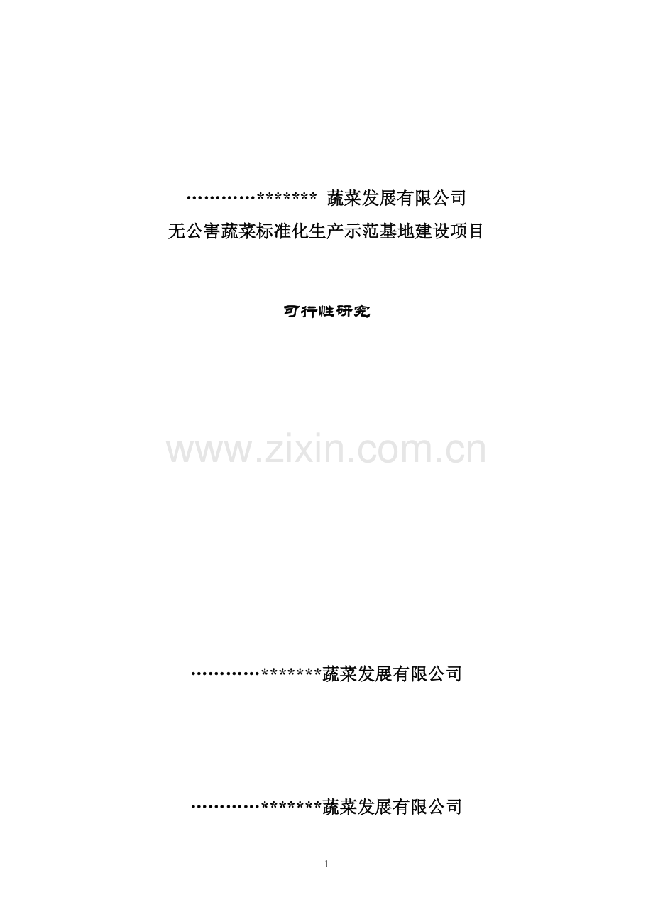 1.1.1项目名称:…………*******蔬菜发展有限公司无公害蔬菜标准化生产示范基地建设项目。