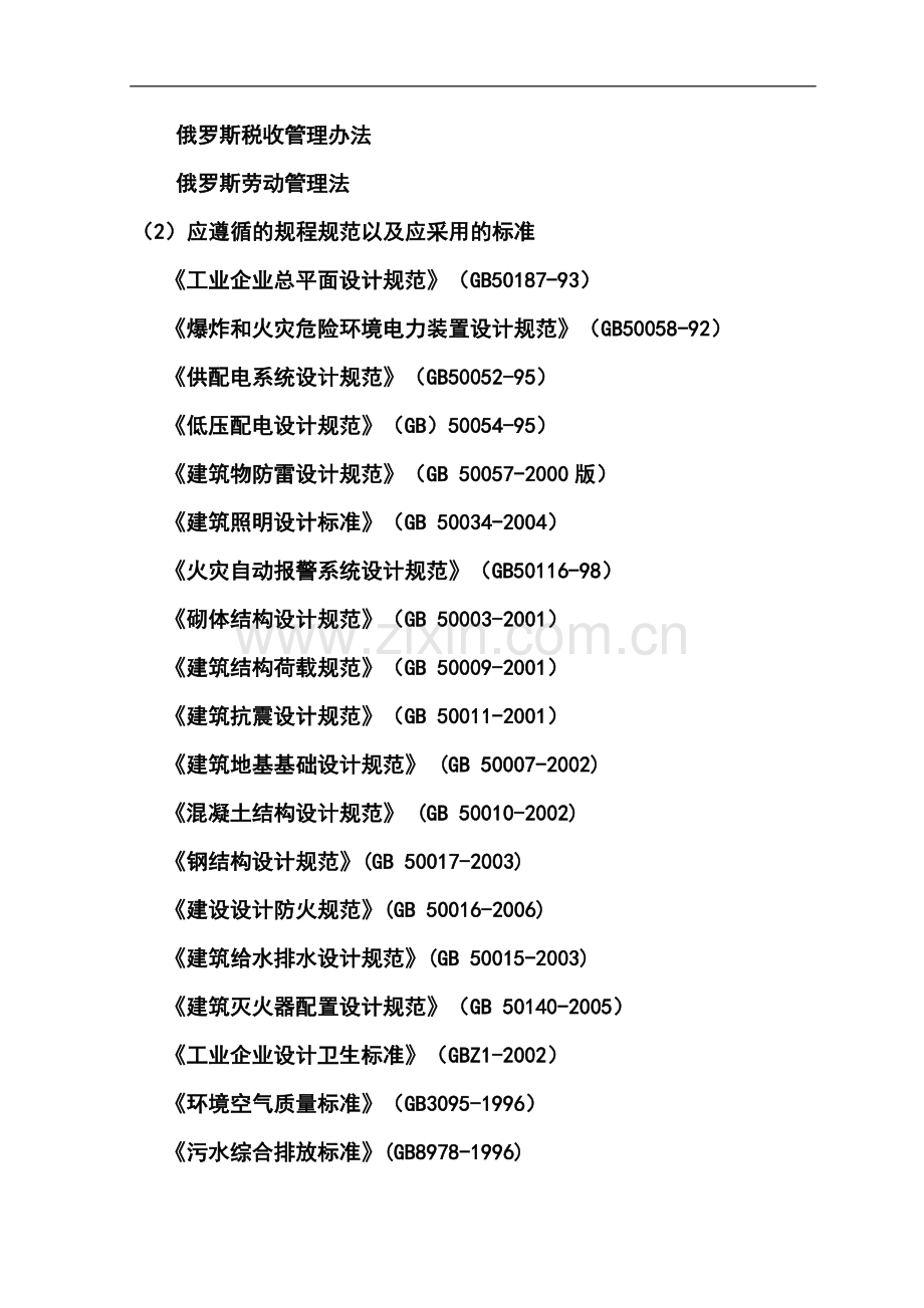 1)严格执行伊尔库茨克州有关的规范、规定及标准,确保生产及人身安全。功能分区,系统分明,布置整齐,在实用和经济的前提下注意美观。
