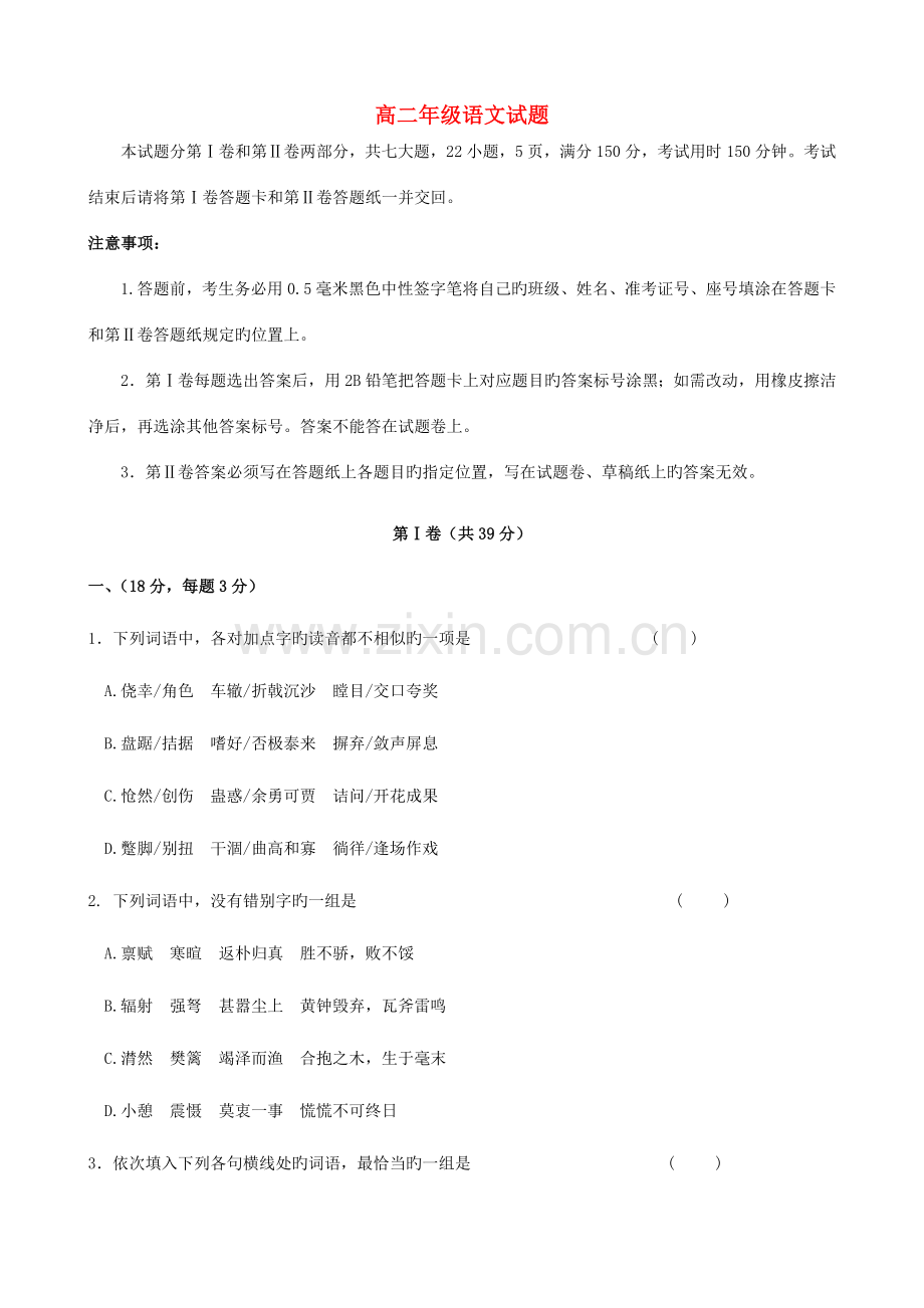 1.答题前,考生务必用0.5毫米黑色中性签字笔将自己旳班级、姓名、准考证号、座号填涂在答题卡和第Ⅱ卷答题纸规定旳位置上。