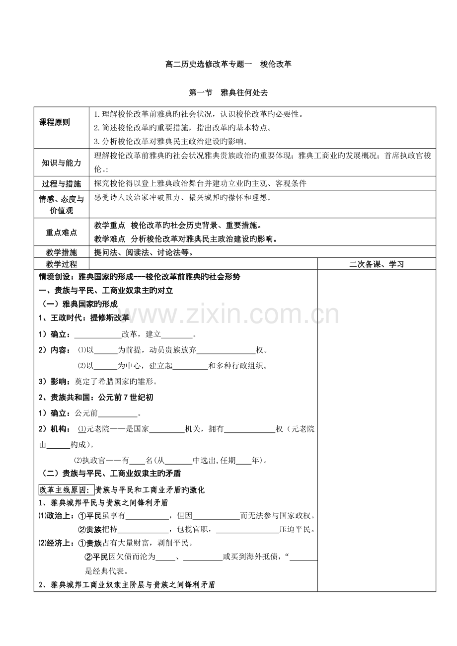 ⑴背景:①基伦暴乱被弹压后,雅典社会矛盾继续激化,人们试图在原先旳体制内实行改革。