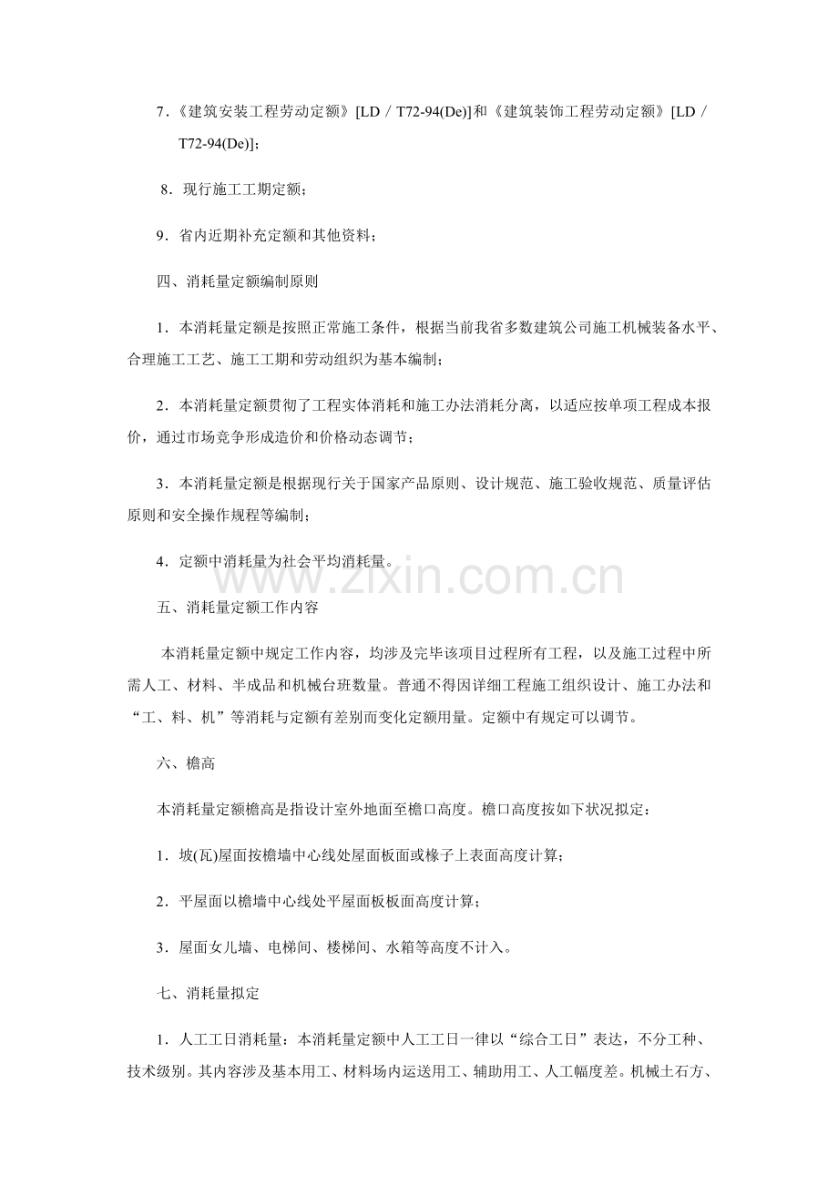 3.本消耗量定额是根据现行关于国家产品原则、设计规范、施工验收规范、质量评估原则和安全操作规程等编制;