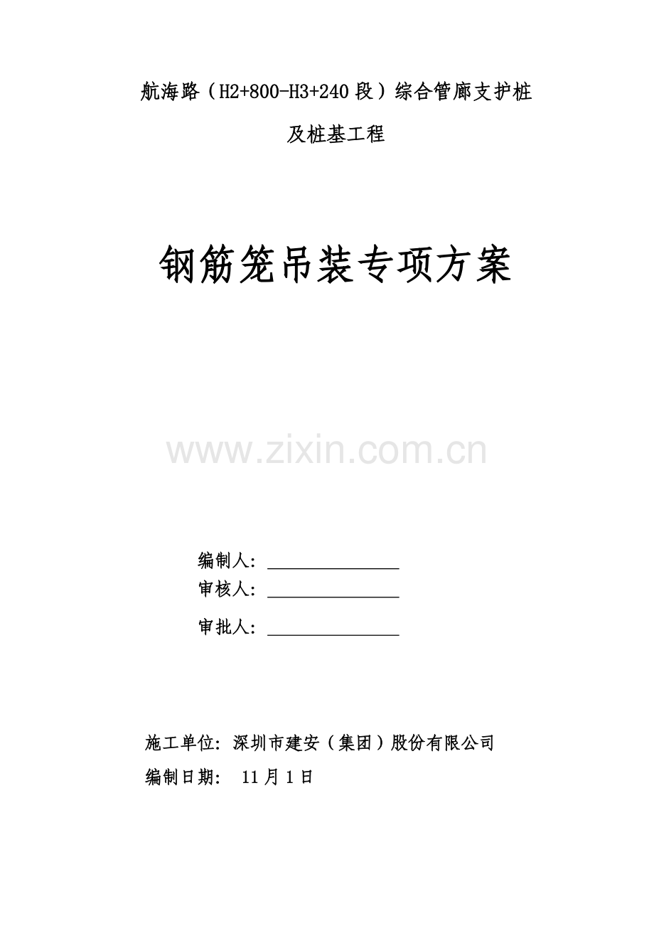 (3)钢筋笼吊至离地面0.3m~0.5m后,应检查钢筋笼与否平稳,后主吊慢慢起钩,依照钢筋笼尾部距地面距离,随时指挥副吊配合起钩。