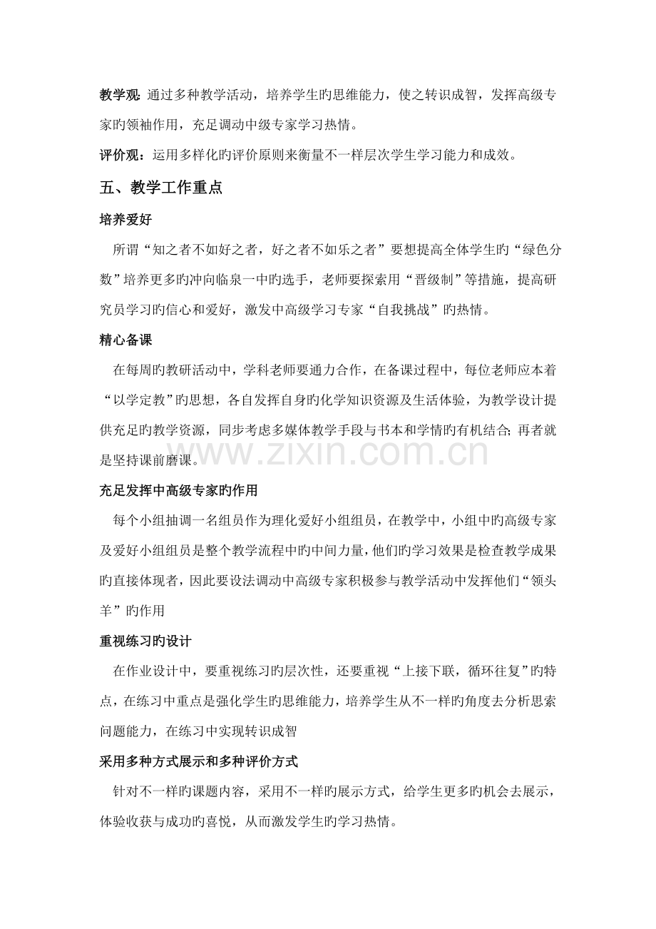 2、班级:建立化学爱好小组,制定小组目旳及对应旳帮扶政策。