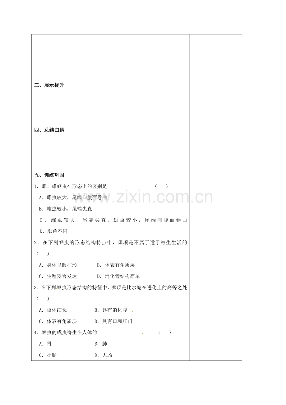 1.理解蛔虫适于寄生生活的结构和生理特点;