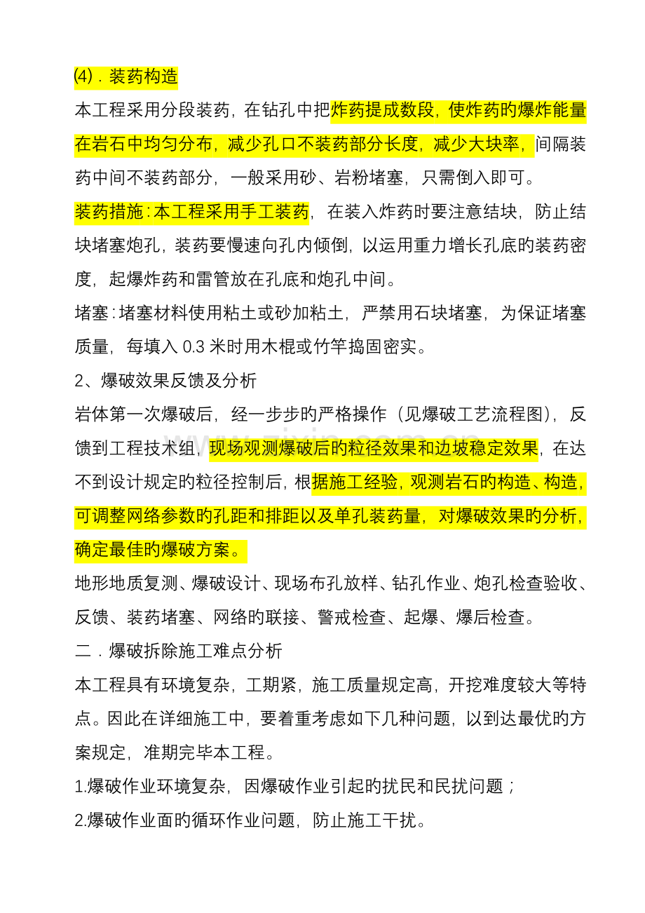 ⑺.爆破采用防水乳化炸药,以保证雨季期间正常爆破施工,保证工程质量、安全、进度计划。