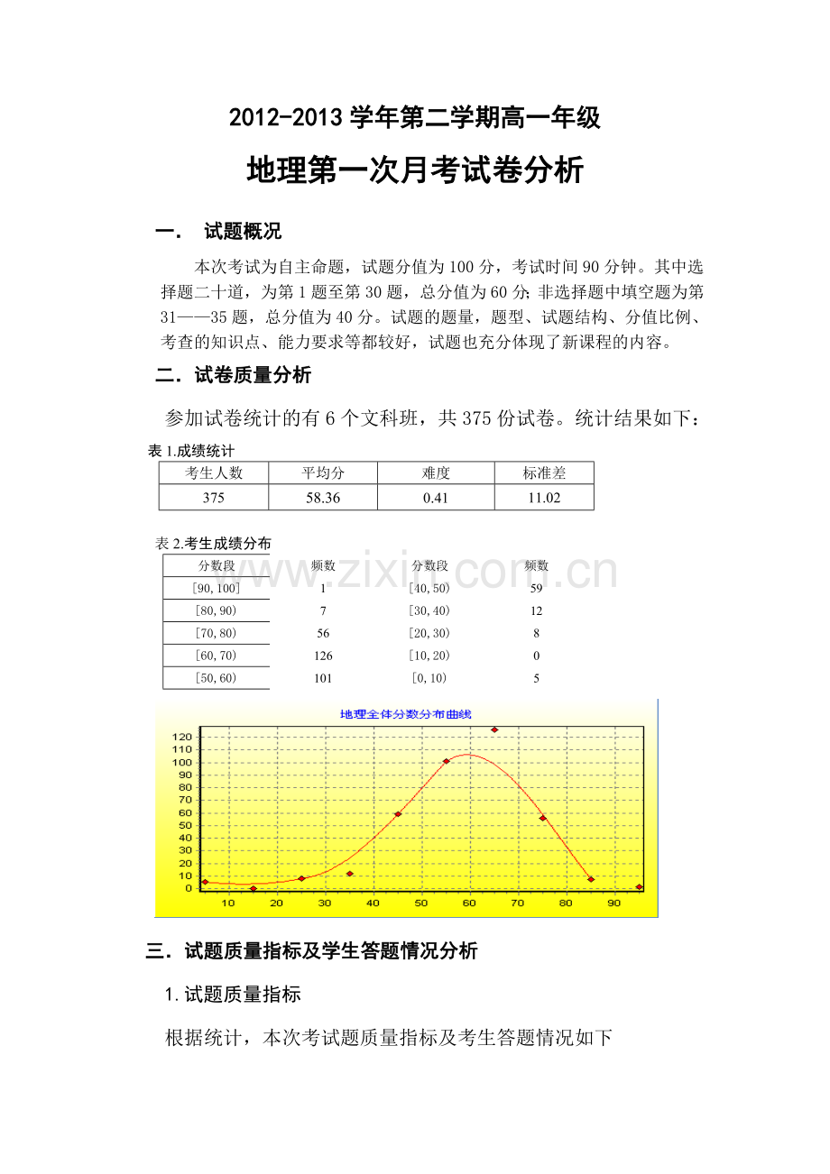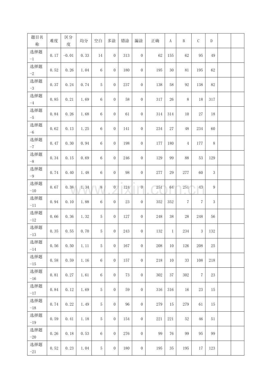 参加试卷统计的有6个文科班,共375份试卷。统计结果如下: