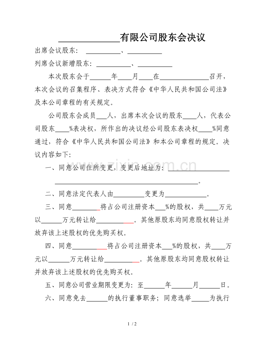 有限公司股东会决议